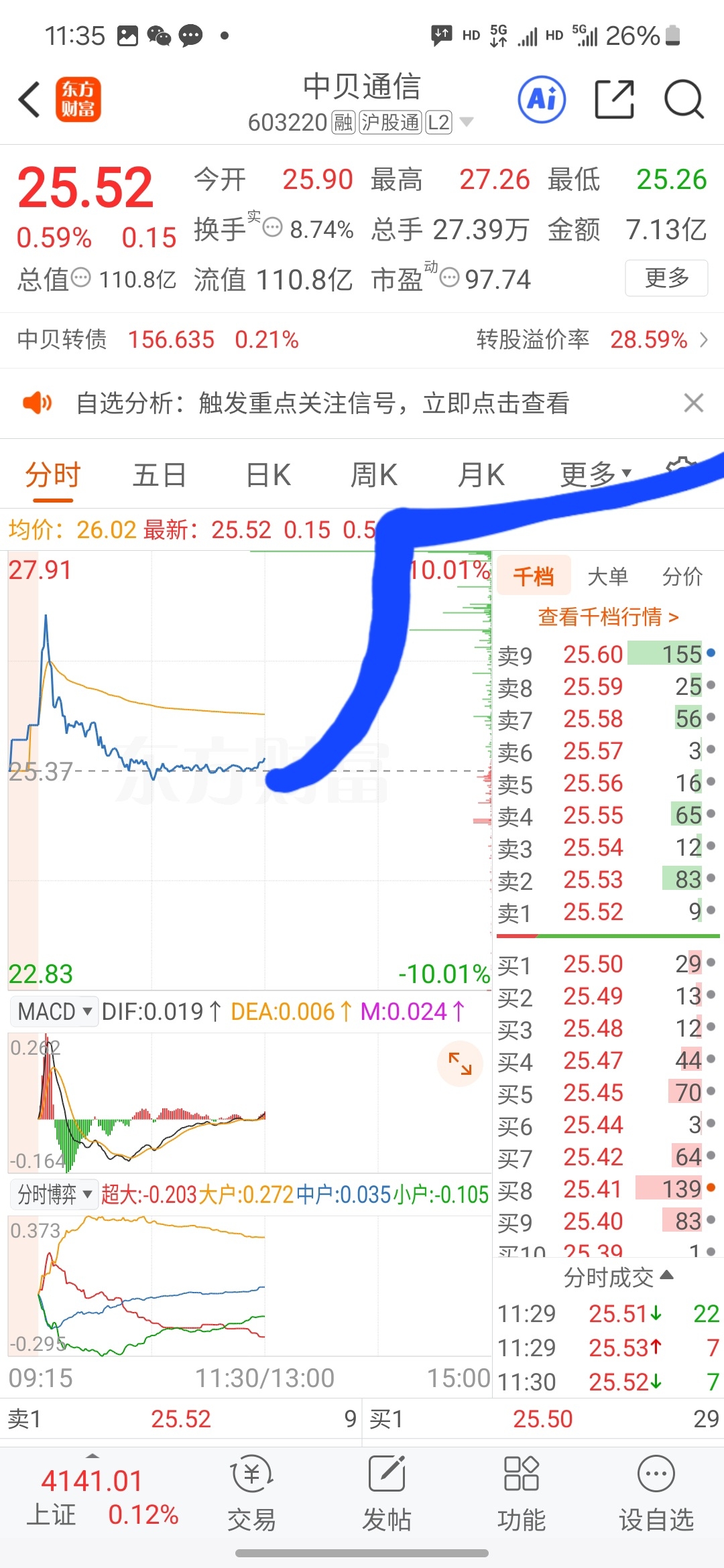 $中贝通信(SH603220)$ 大牛拿住,下午反包,明天无量一字板