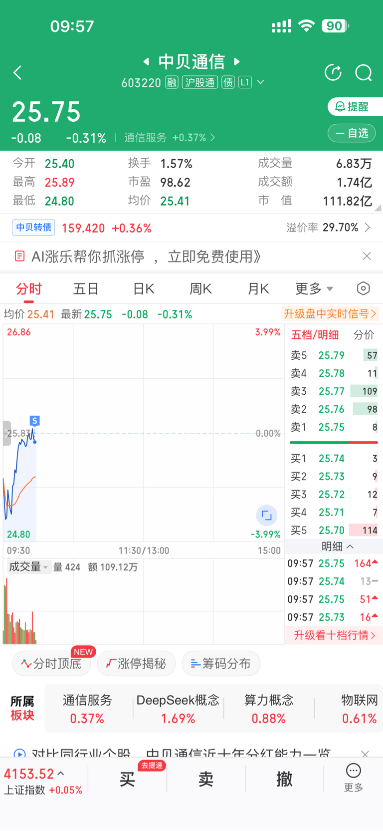 $中贝通信(SH603220)$ 拜拜了您呢