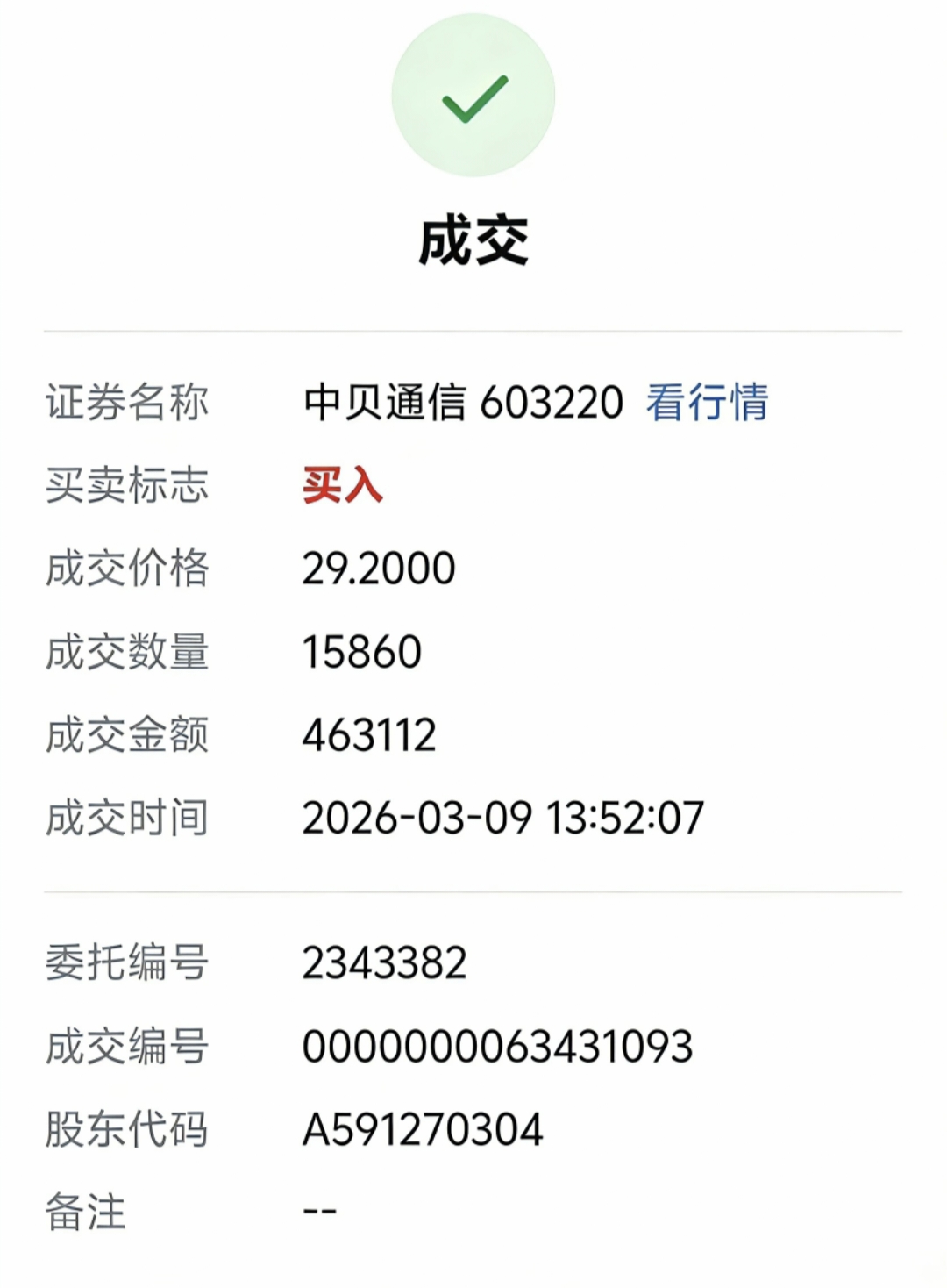 $中贝通信(SH603220)$ 尾盘买了些,希望大家一起吃肉