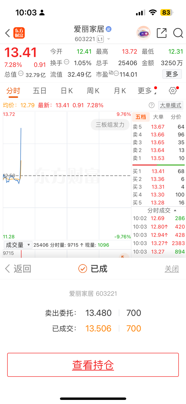$爱丽家居(SH603221)$ 虽然买的少,但是这个s是真漂亮