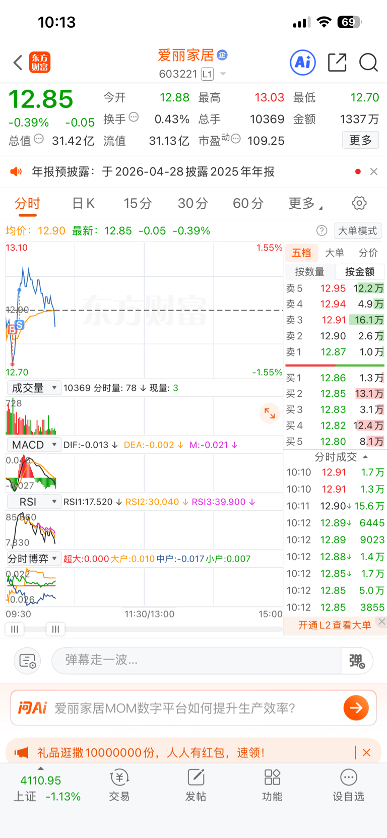 $爱丽家居(SH603221)$ 这是又在给我机会吗