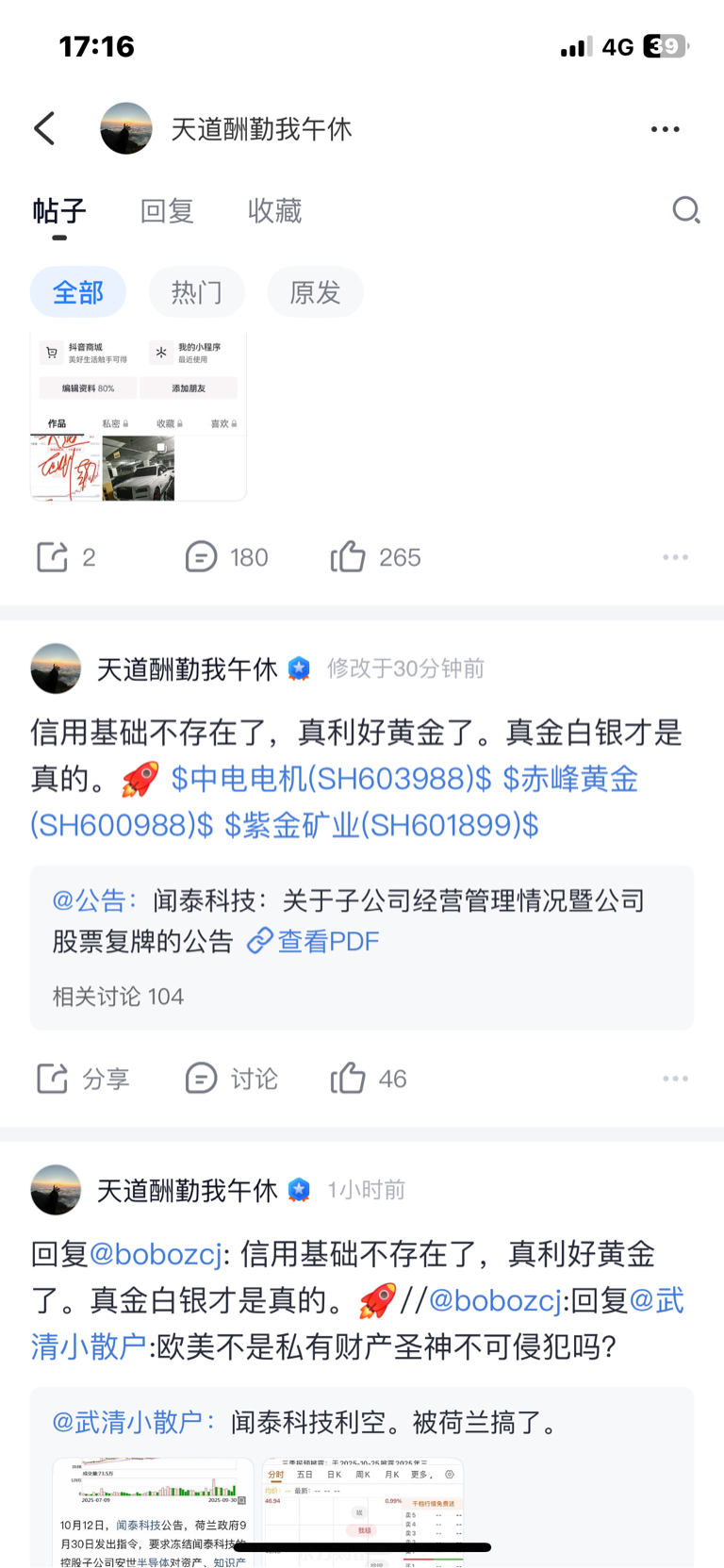 温馨提示: 1.根据《证券法》规定,禁止编造、传播虚假信息或者误导性信息,扰乱证券市场;2.用户在本社区发表的所有资料、言论等仅代表个人观点,与本网站立场无关,不对您构成任何投资建议。用户应基于自己的独立判断,自行决定证券投资并承担相应风险。《东方财富社区管理规定》
