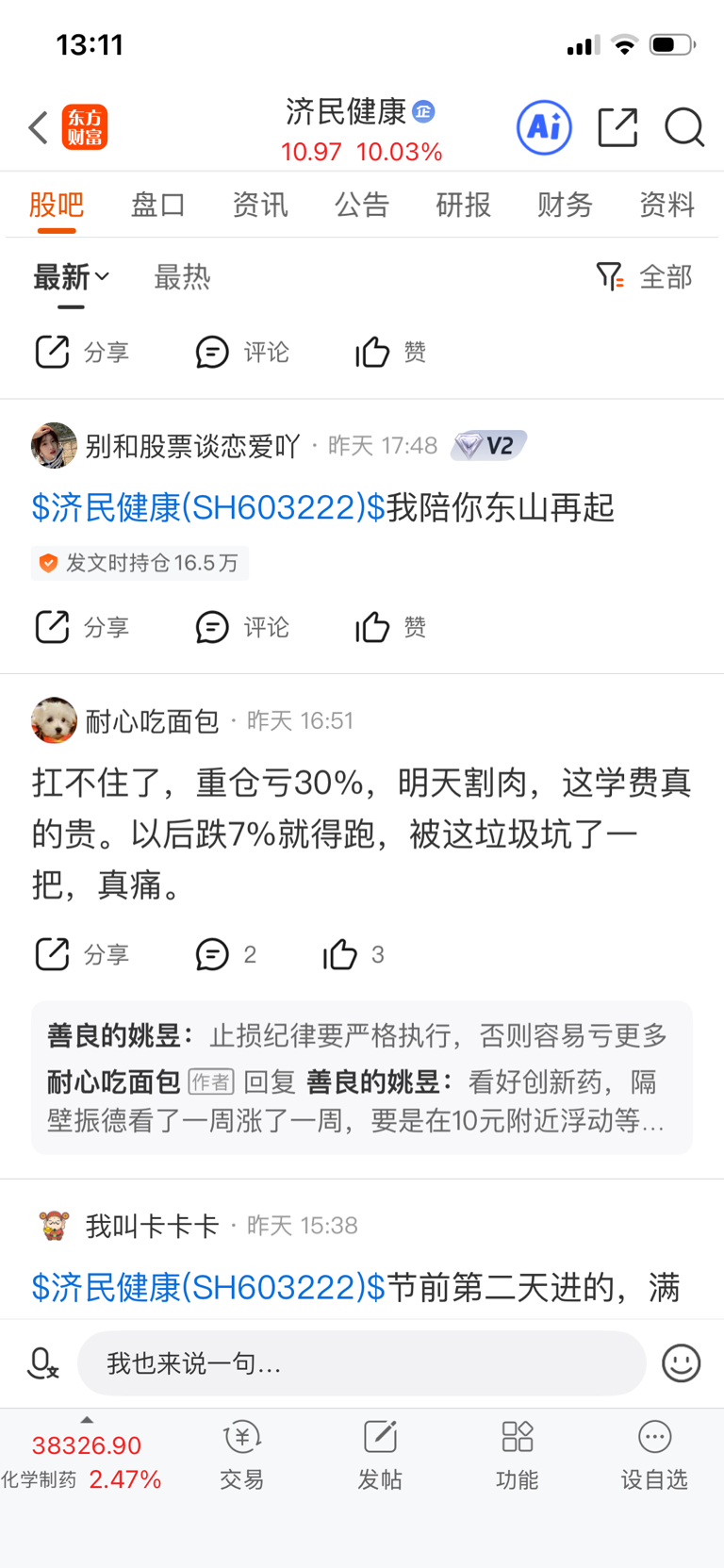 $济民健康(SH603222)$