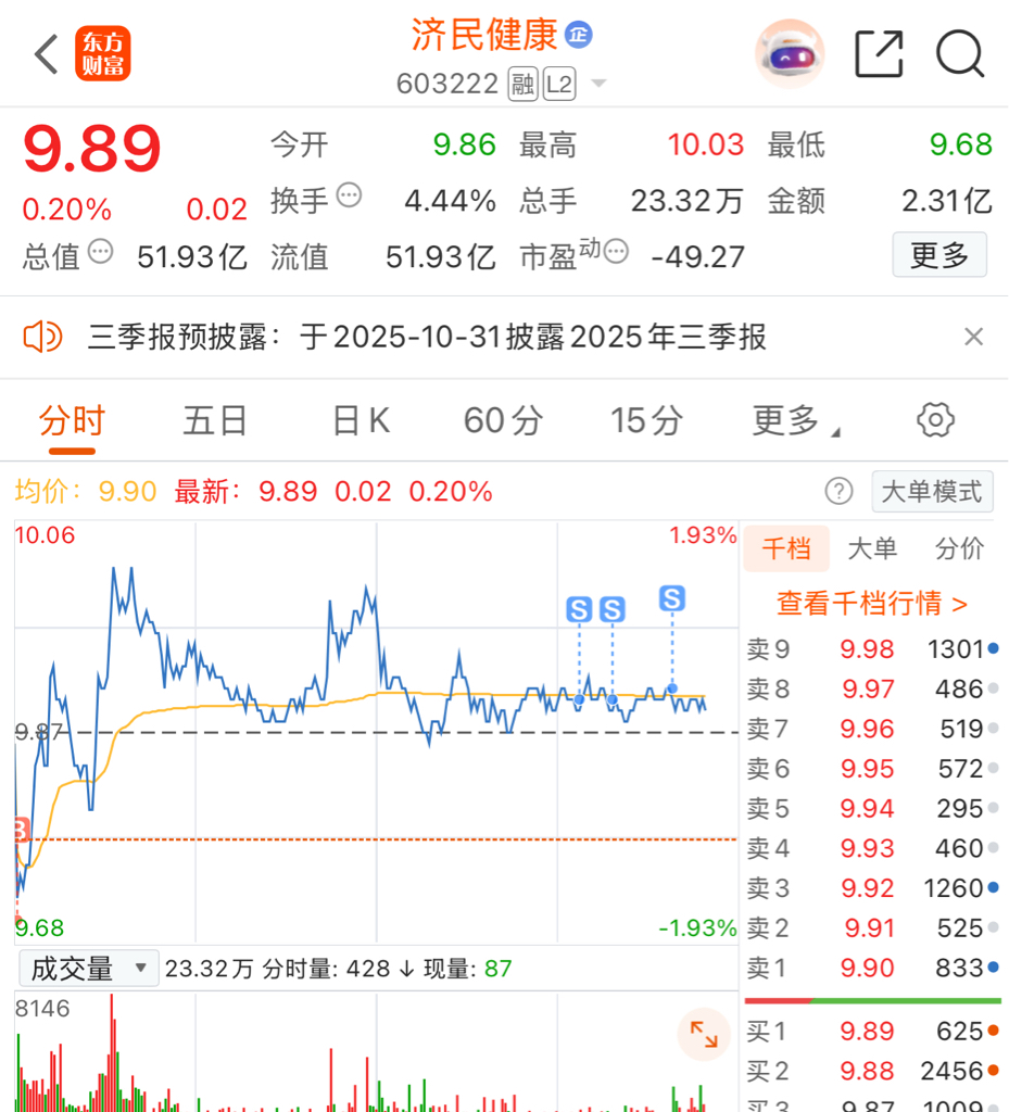 $济民健康(SH603222)$ 去了一半到房地产