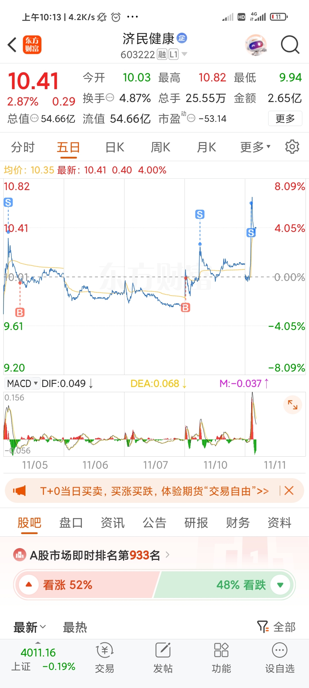 $济民健康(SH603222)$ 终于有点操作空间了!