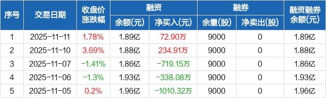济民健康:融资净买入72.9万元,融资余额1.89亿元(11-11)