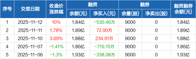 济民健康:融资净偿还530.46万元,融资余额1.84亿元(11-12)
