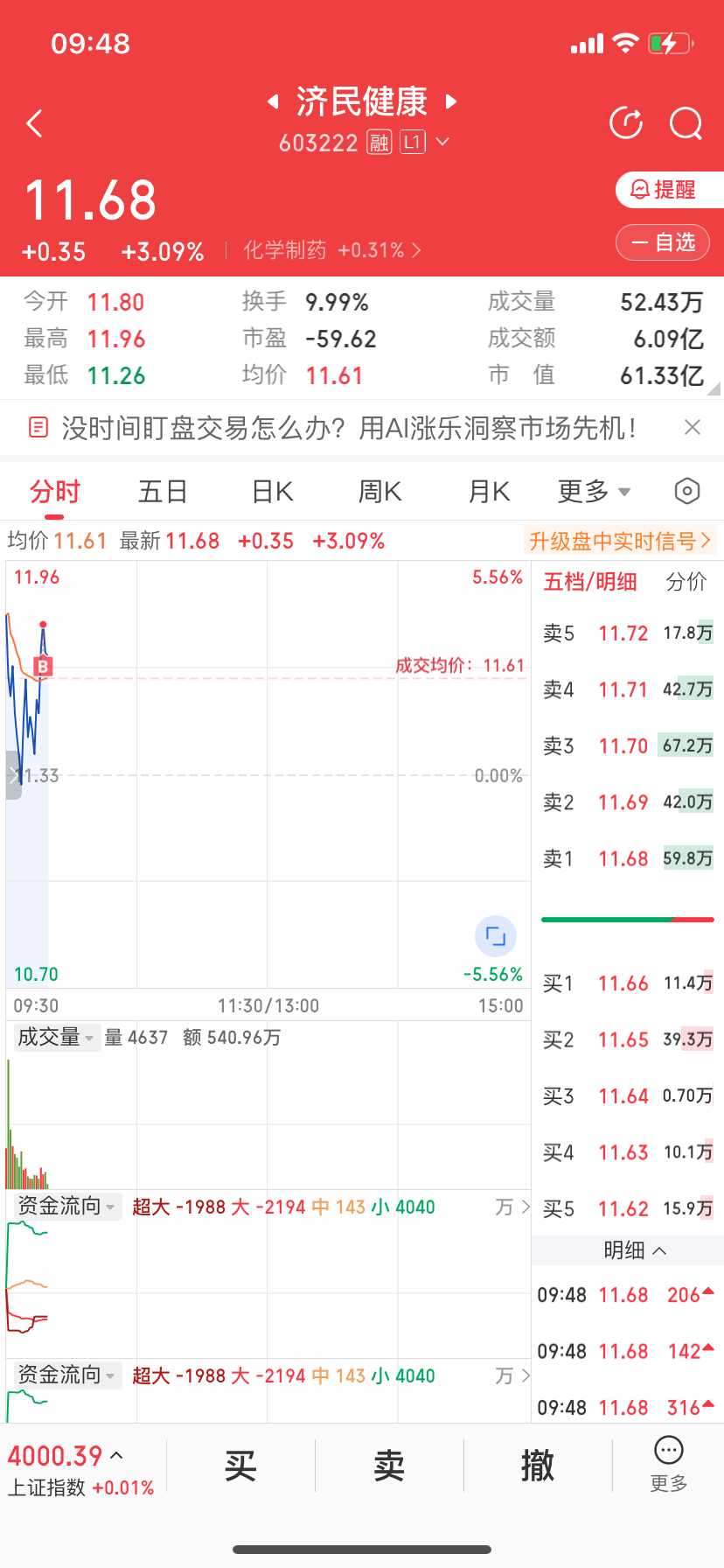 $济民健康(SH603222)$ 无敌了、挂山顶了
