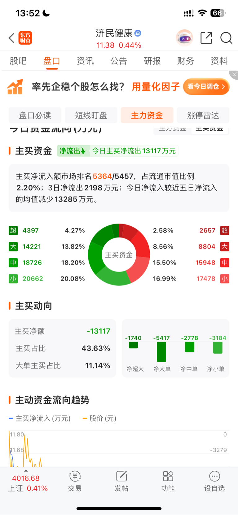 $济民健康(SH603222)$ 主力出货太大了