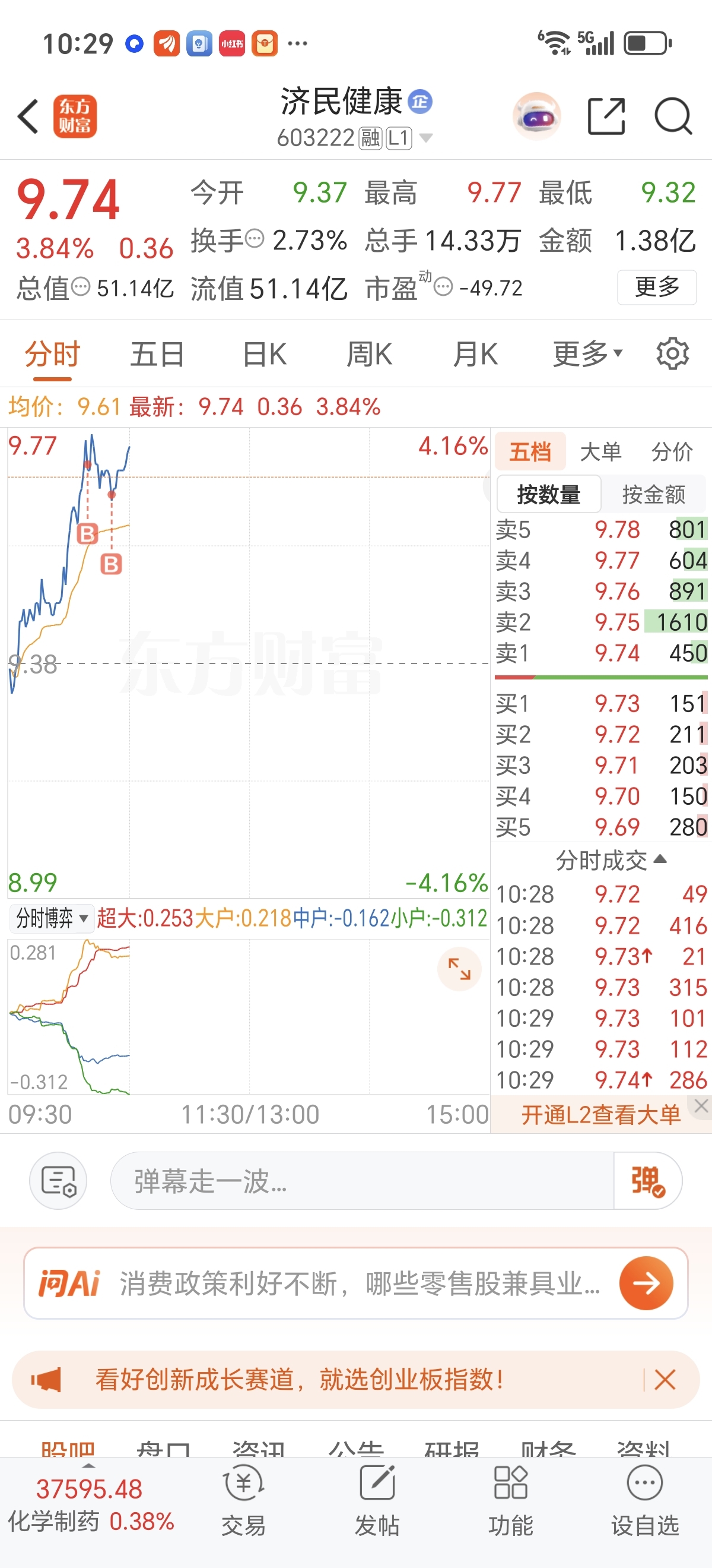 $济民健康(SH603222)$ 上升趋势大胆买