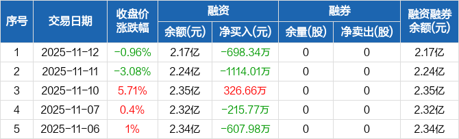 恒通股份:融资净偿还698.34万元,融资余额2.17亿元(11-12)