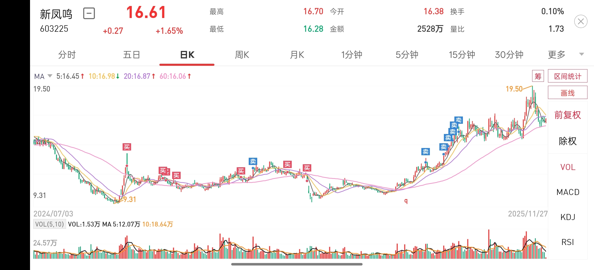 $新凤鸣(SH603225)$ 去年10.8“抢筹”入场,今年8.29结束离场,将近1年的时间,基本没做T,利润26%,虽然不大,也算稳中求胜。这只股票个人觉得,除了业绩稍微差一点,盘子稍微大一点,也没有别的太大问题,先走一步,祝留下的兄弟发大财!