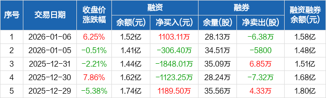 新凤鸣:融资净买入1103.11万元,融资余额1.52亿元(01-06)