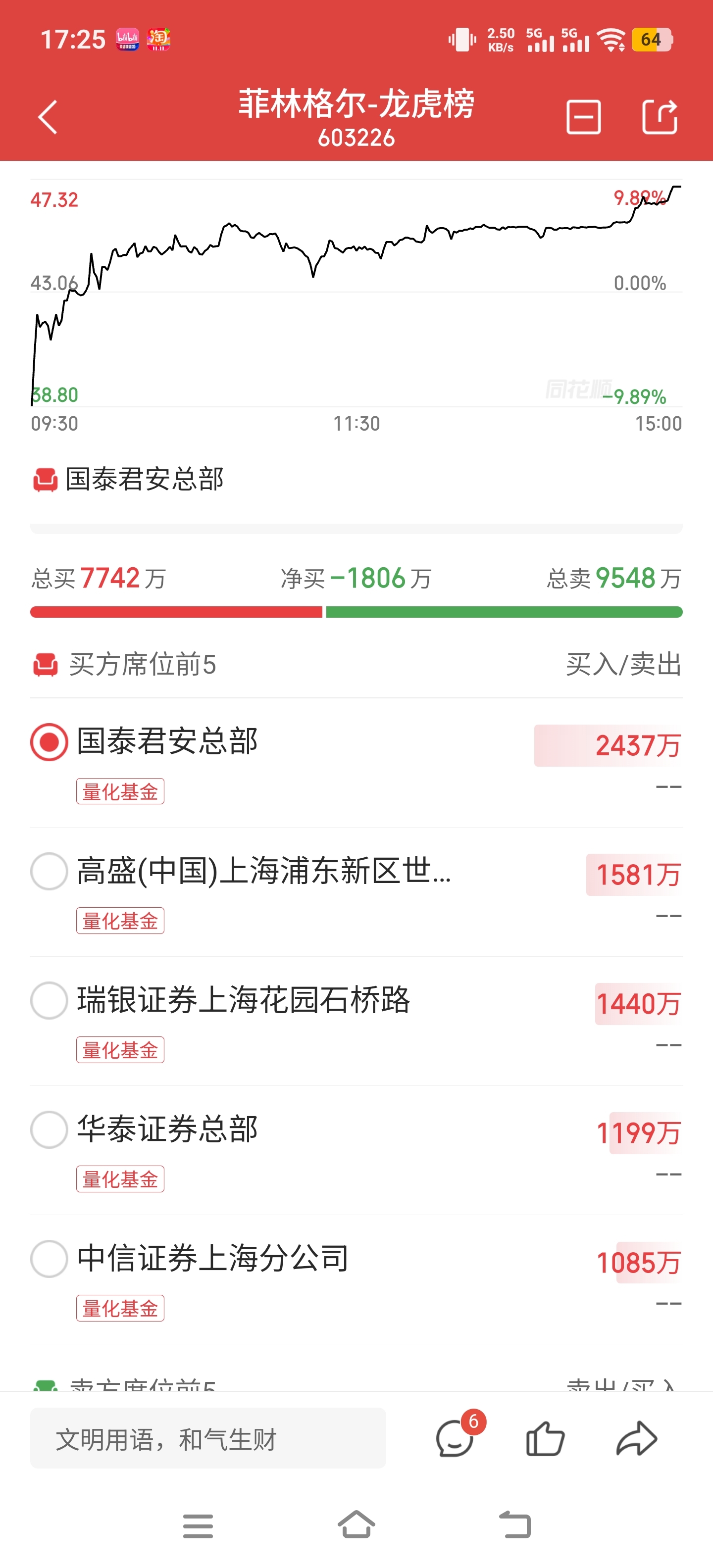 $菲林格尔(SH603226)$ byd量化霸榜了
