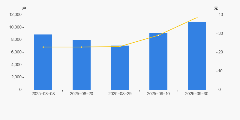 2025年8月8日至今,公司股东户数显著增长,区间涨幅为22.63%。2025年8月8日至2025年9月30日区间股价上涨68.60%。