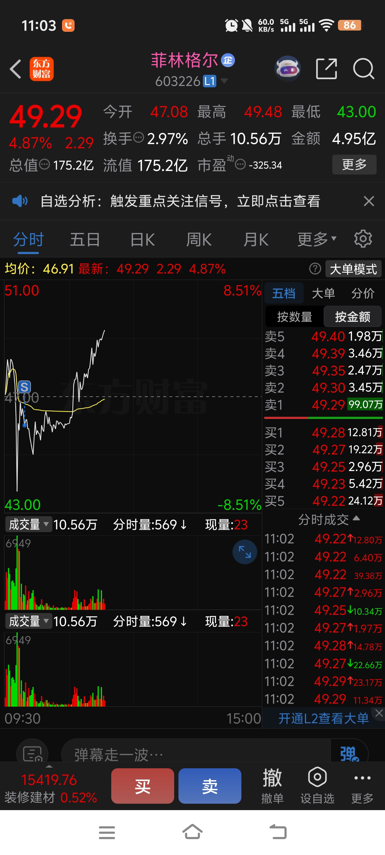 $菲林格尔(SH603226)$ 又是后悔的一天