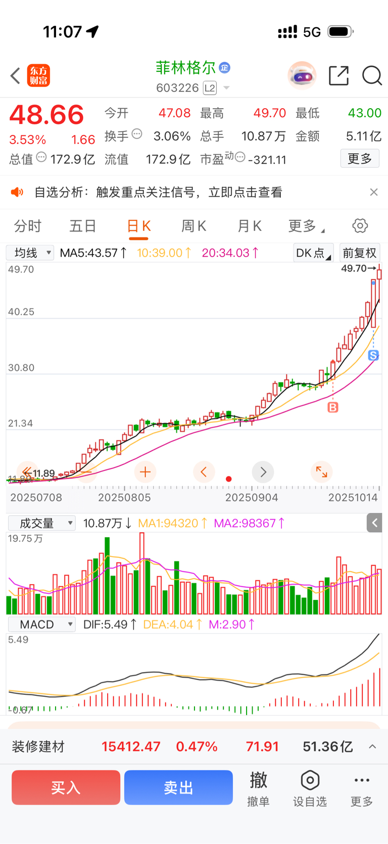 $菲林格尔(SH603226)$ 昨天尾盘卖了,吃了40点,这是谁拿得住