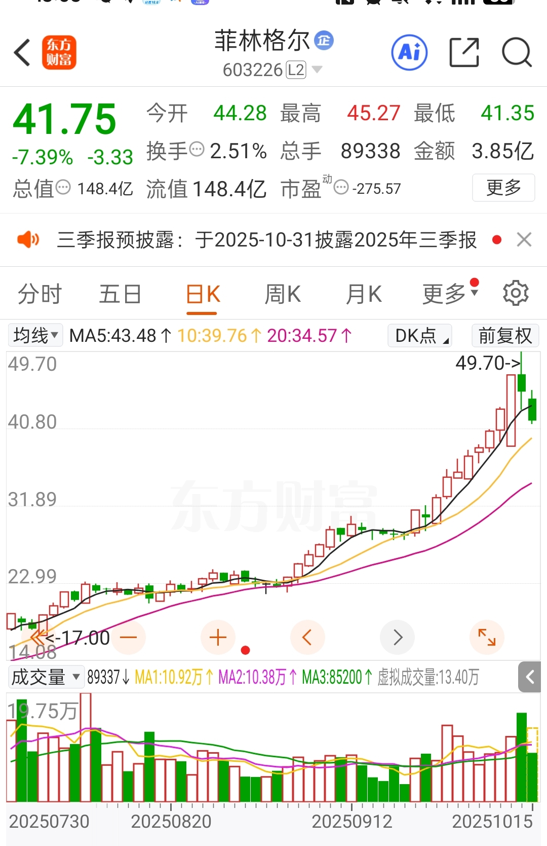 $菲林格尔(SH603226)$ 涨了半年,怎么我一进来就跌两天,运气这么不好吗?