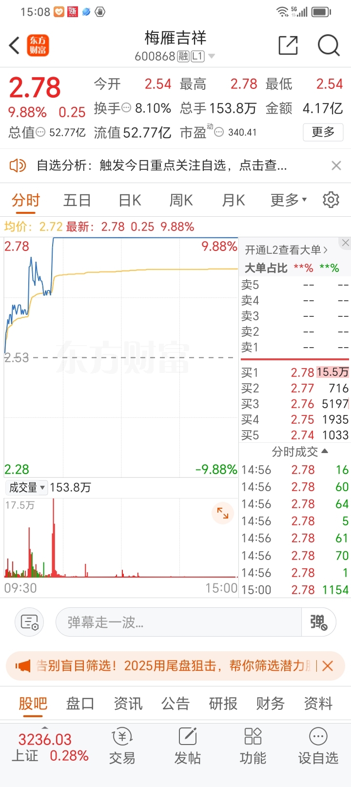 梅雁吉祥涨停持股明天继续吃肉!科泰观察高抛!折腾折腾有酒有肉