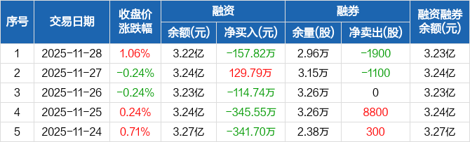 雪峰科技:融资净偿还157.82万元,融资余额3.22亿元(11-28)