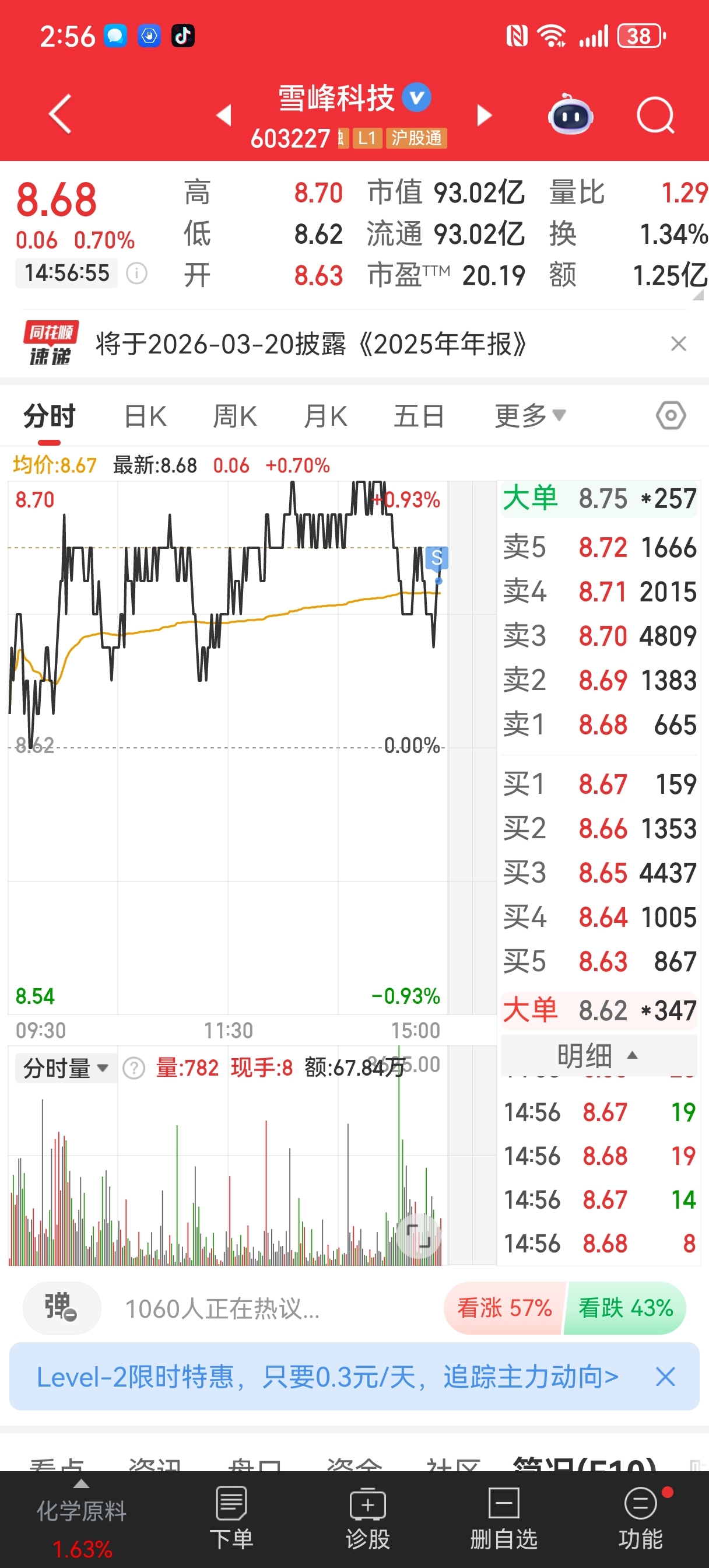 $雪峰科技(SH603227)$ 多亏卖了,这股看不明白