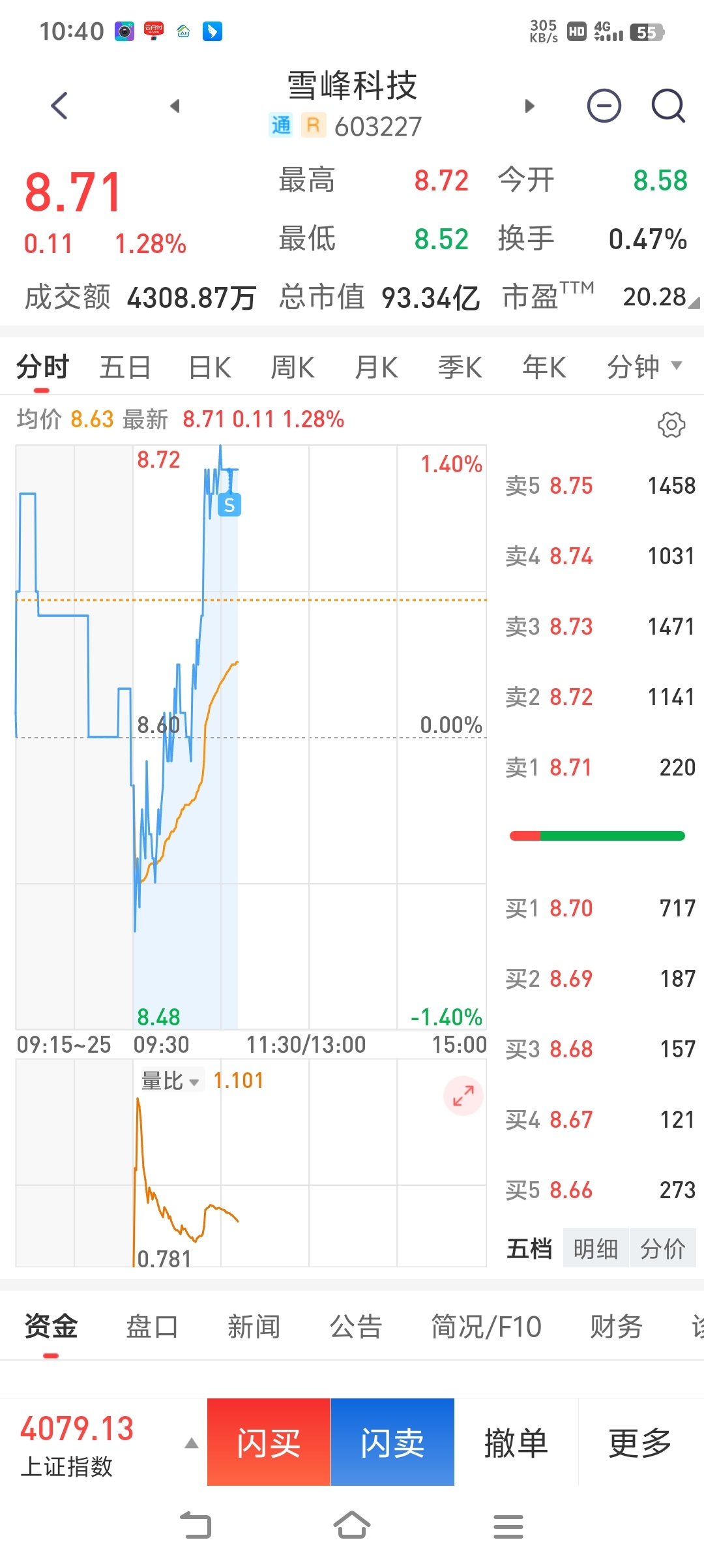$雪峰科技(SH603227)$ 感谢坤坤带我发财,只要你还在这股吧,我绝对不跑,今天小赚一笔,半天工资到手