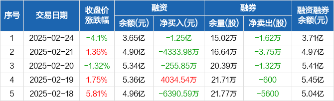 景旺电子:融资净偿还1.25亿元,两市排名第18(02-24)