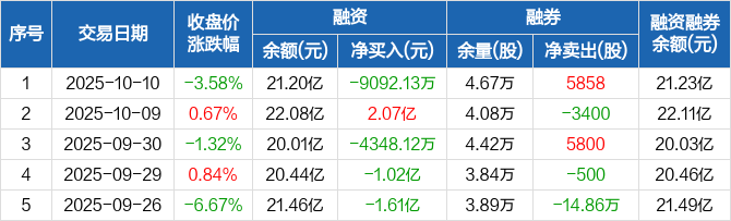 景旺电子:融资净偿还9092.13万元,融资余额21.2亿元(10-10)