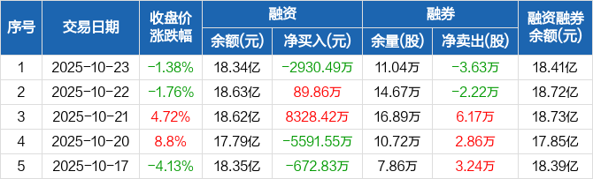 景旺电子:融资净偿还2930.49万元,融资余额18.34亿元(10-23)