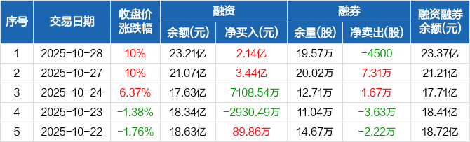 景旺电子:融资净买入2.14亿元,两市排名第14(10-28)