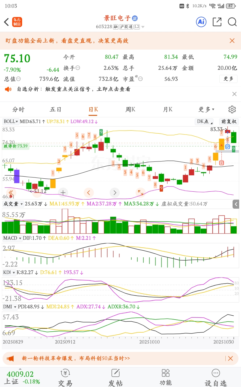 $景旺电子(SH603228)$ 昨天走是对的