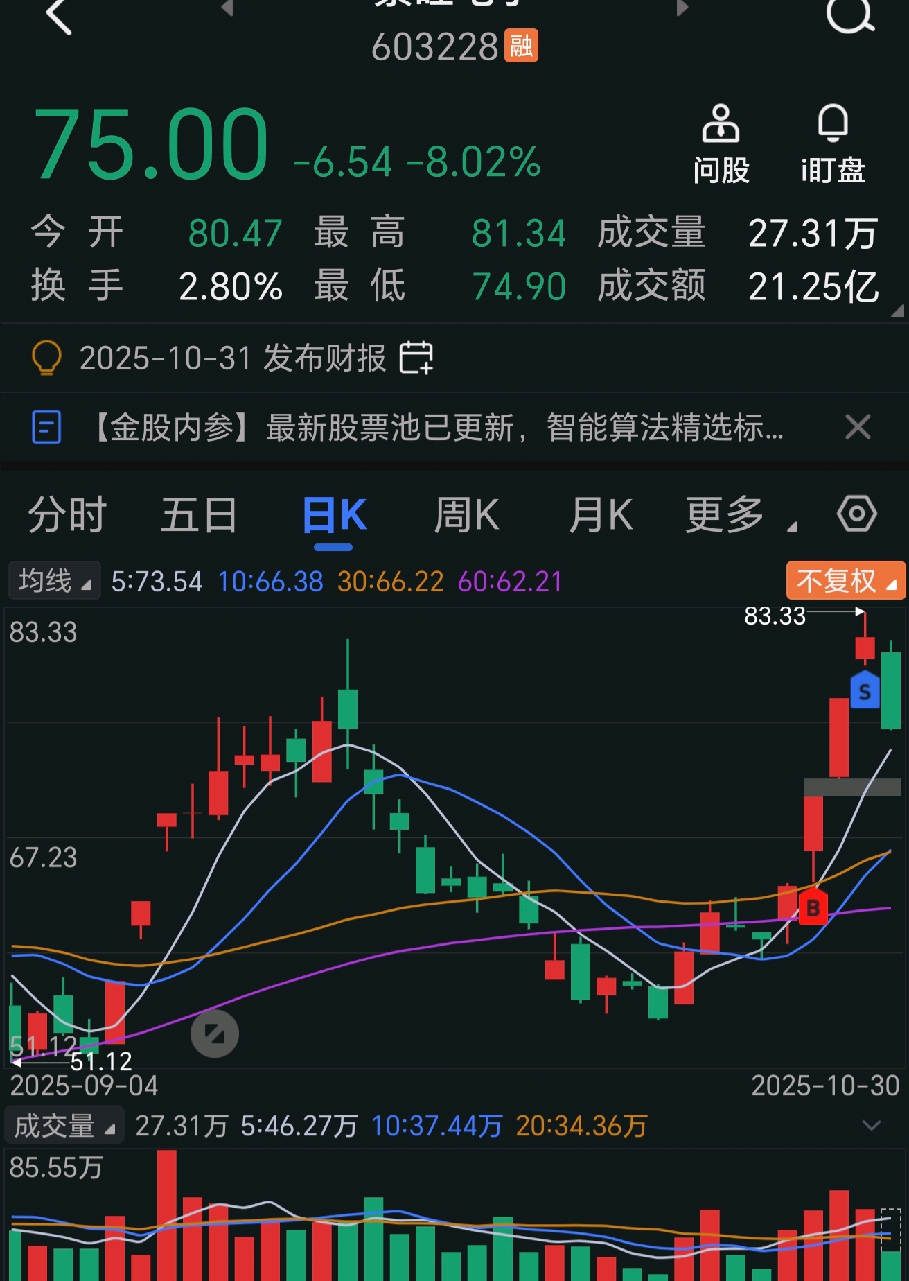 $景旺电子(SH603228)$ 昨天看到不涨停就卖了