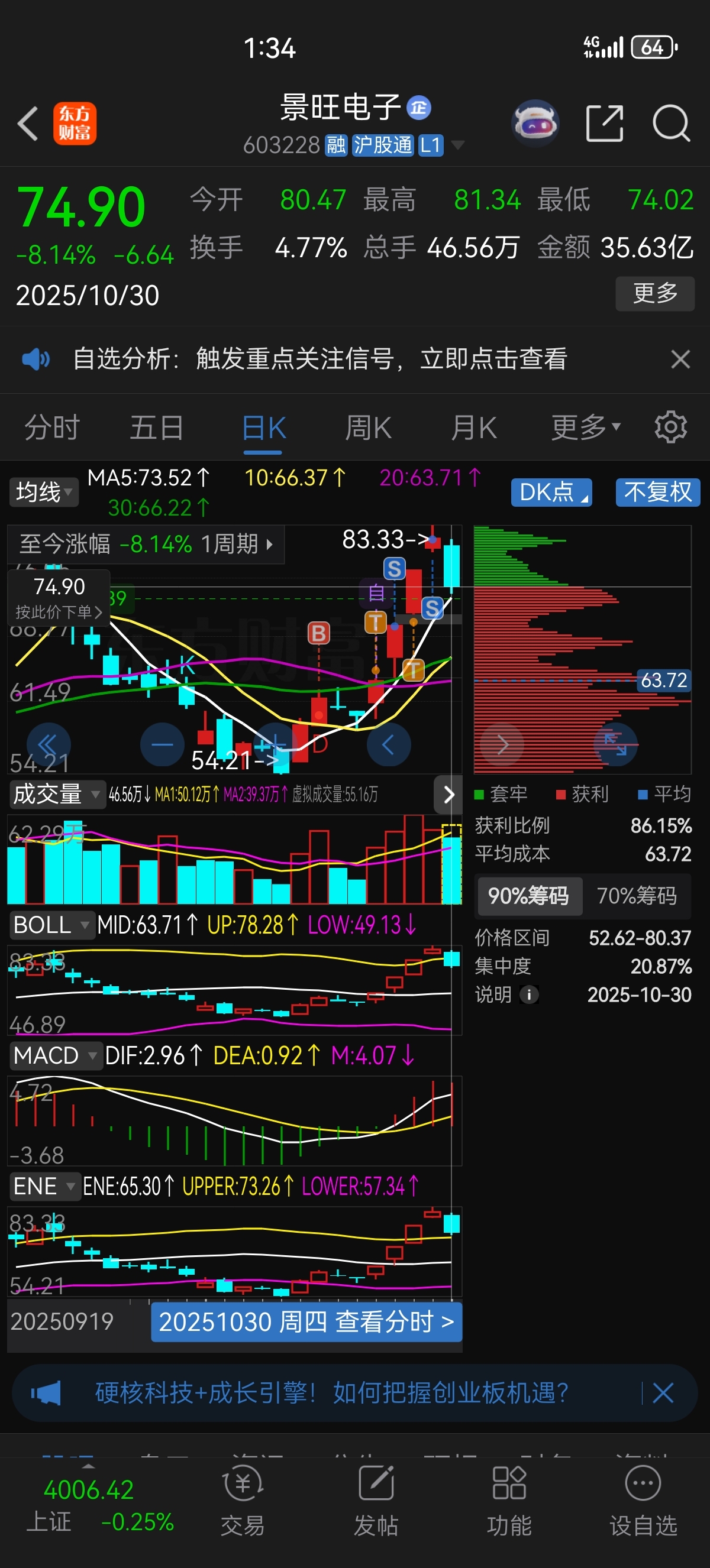 $景旺电子(SH603228)$ 我昨天尾走得快
