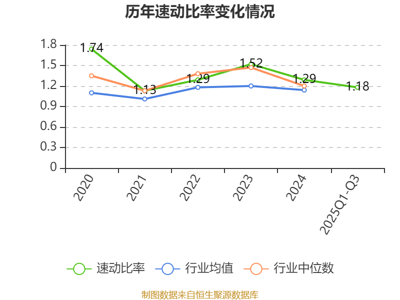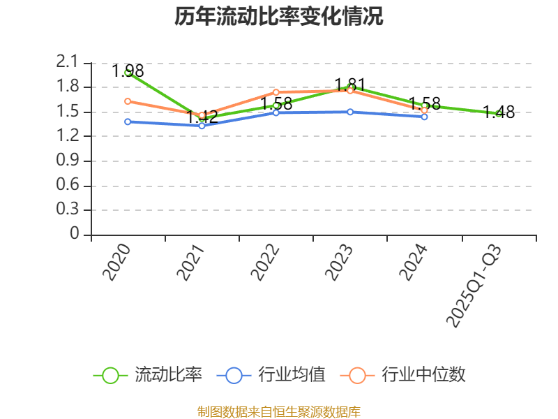 2025年前三季度,公司流动比率为1.48,速动比率为1.18。