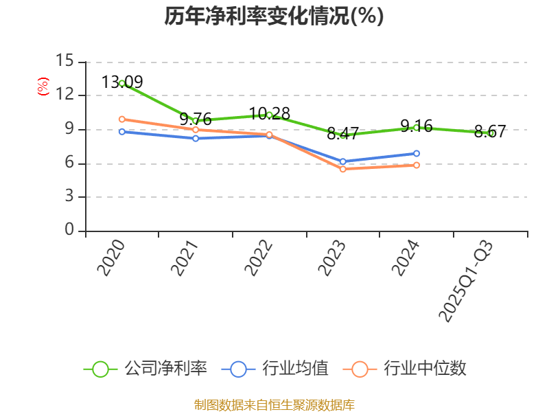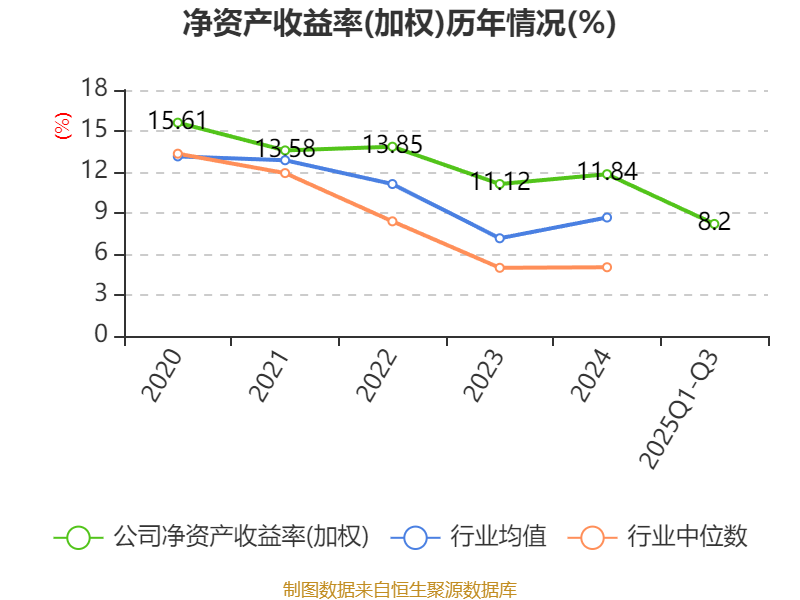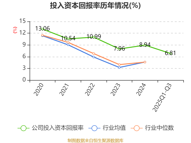 盈利能力方面, 2025年前三季度公司加权平均净资产收益率为8.2%,同比下降1.39个百分点。公司2025年前三季度投入资本回报率为6.81%,较上年同期下降0.13个百分点。