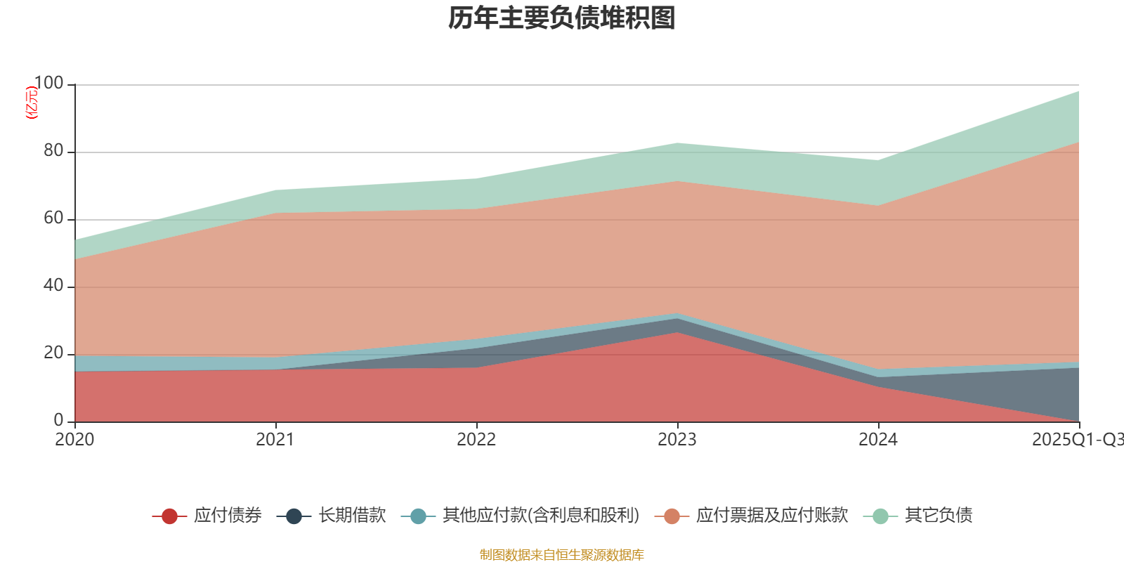 负债重大变化方面,截至2025年三季度末,公司长期借款较上年末增加460.31%,占公司总资产比重上升5.52个百分点;应付债券较上年末减少99.91%,占公司总资产比重下降5.34个百分点;应付票据及应付账款较上年末增加34.35%,占公司总资产比重上升3.43个百分点;短期借款较上年末增加203.38%,占公司总资产比重上升1.02个百分点。