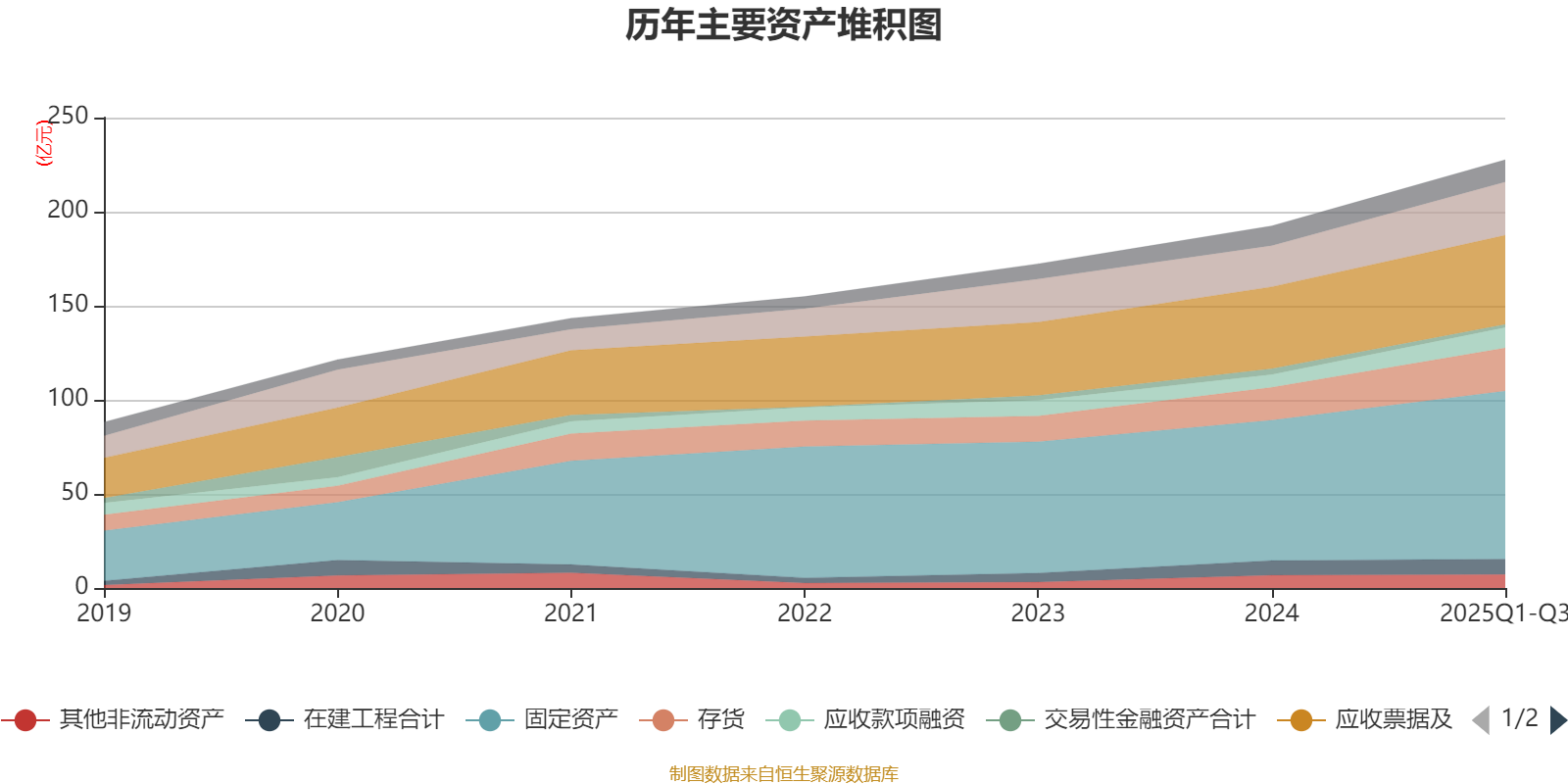 资产重大变化方面,截至2025年三季度末,公司应收票据及应收账款较上年末增加8.79%,占公司总资产比重下降1.81个百分点;应收款项融资较上年末增加59.88%,占公司总资产比重上升1.24个百分点;货币资金较上年末增加29.67%,占公司总资产比重上升1.09个百分点;存货较上年末增加31.15%,占公司总资产比重上升0.99个百分点。