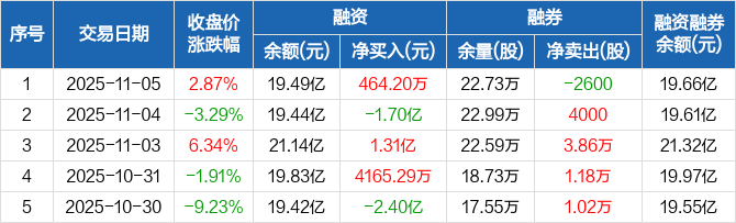 景旺电子:融资净买入464.2万元,融资余额19.49亿元(11-05)