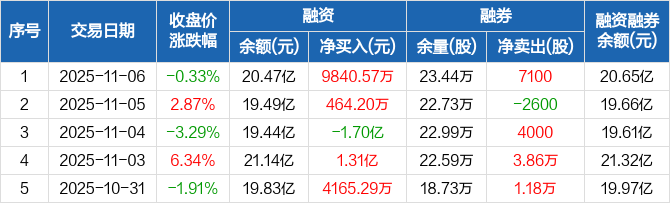 景旺电子:融资净买入9840.57万元,融资余额20.47亿元(11-06)