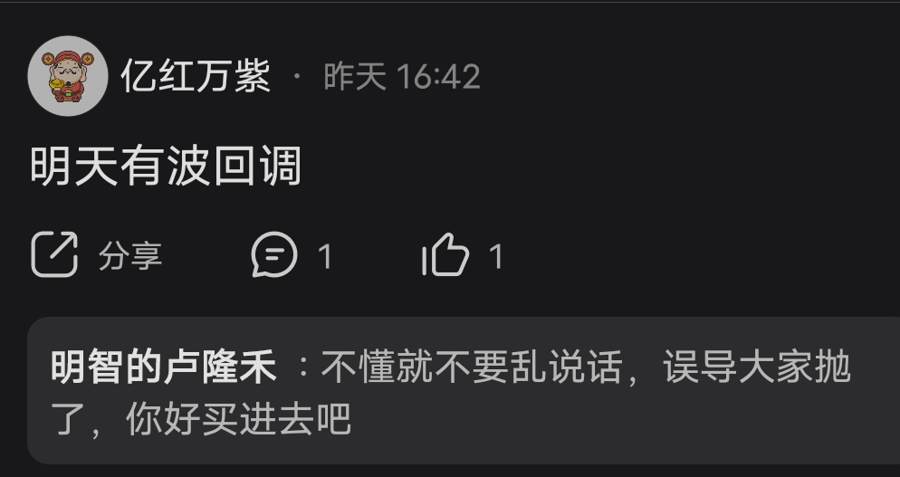 温馨提示: 1.根据《证券法》规定,禁止编造、传播虚假信息或者误导性信息,扰乱证券市场;2.用户在本社区发表的所有资料、言论等仅代表个人观点,与本网站立场无关,不对您构成任何投资建议。用户应基于自己的独立判断,自行决定证券投资并承担相应风险。《东方财富社区管理规定》
