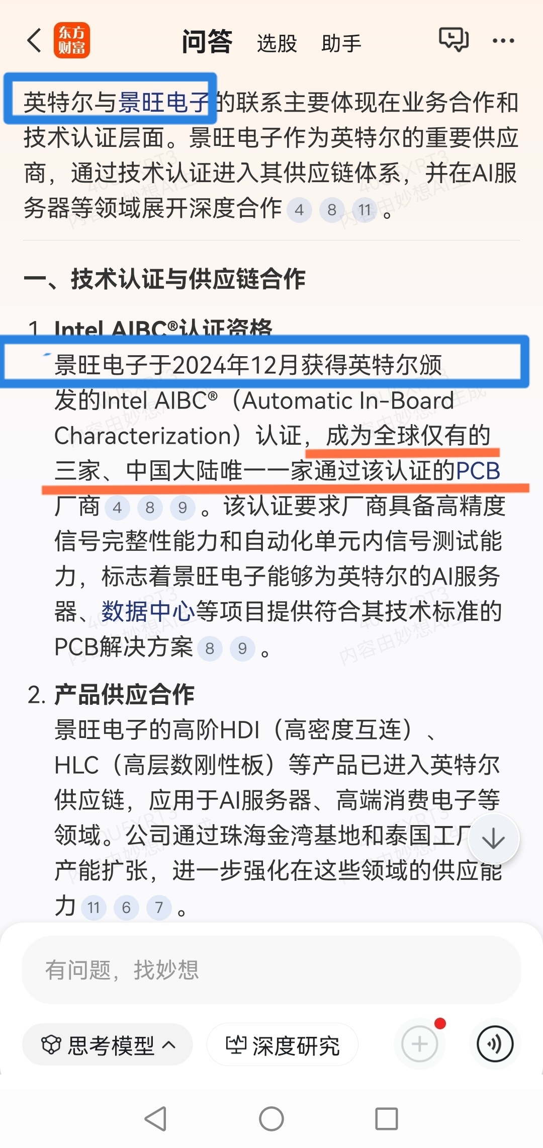 $景旺电子(SH603228)$ $英特尔(NASDAQ|INTC)$ 景旺电子是英特尔在中国的唯一有认证供应商