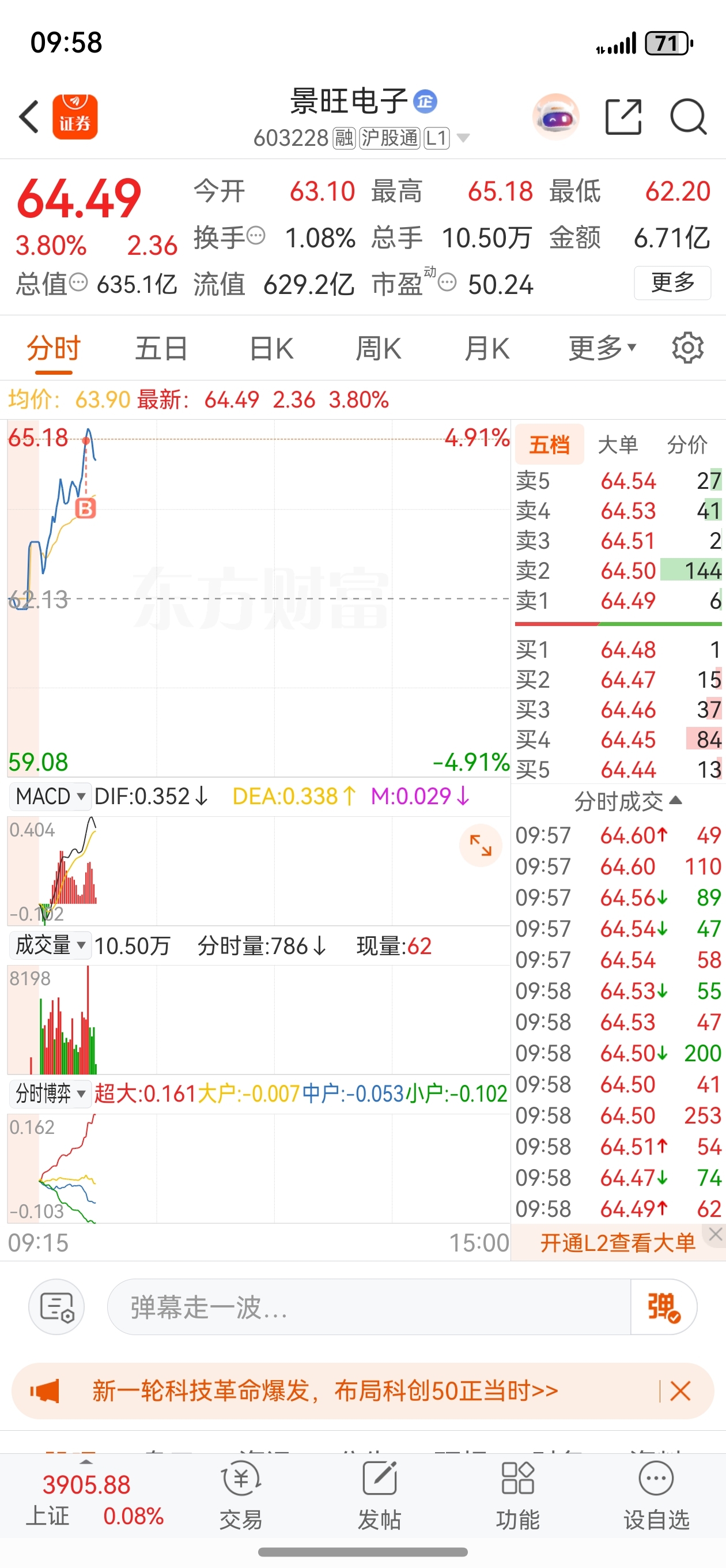 $景旺电子(SH603228)$ 各位 不好意思 我买崩了