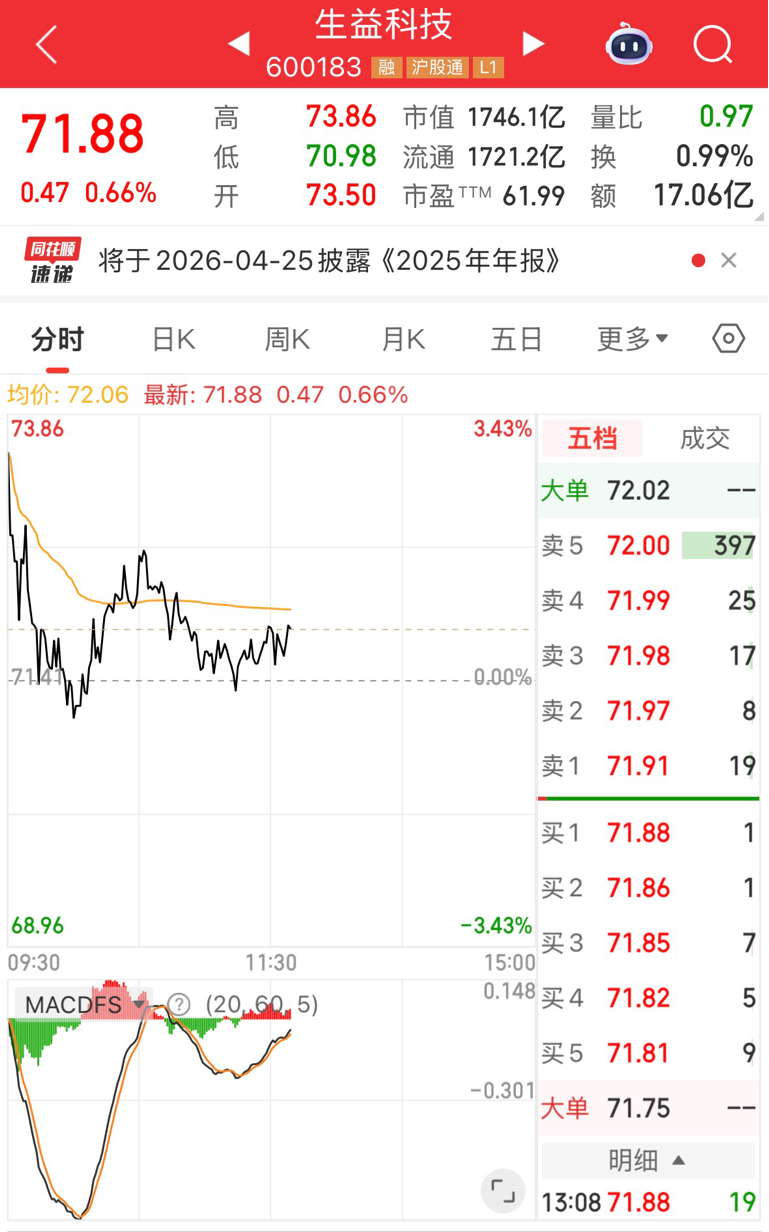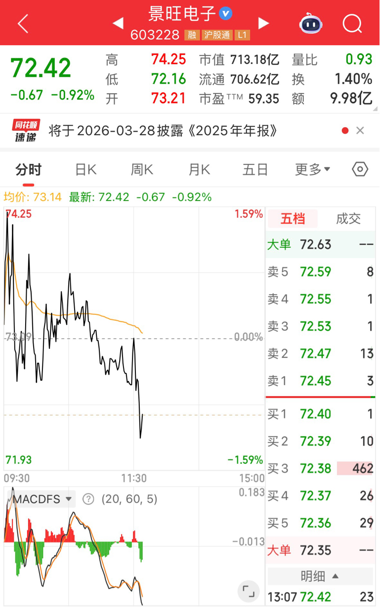 $景旺电子(SH603228)$ 一个天一个地,开门第一天来献丑了