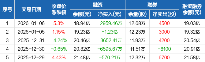 景旺电子:连续5日融资净偿还累计2.6亿元(01-06)
