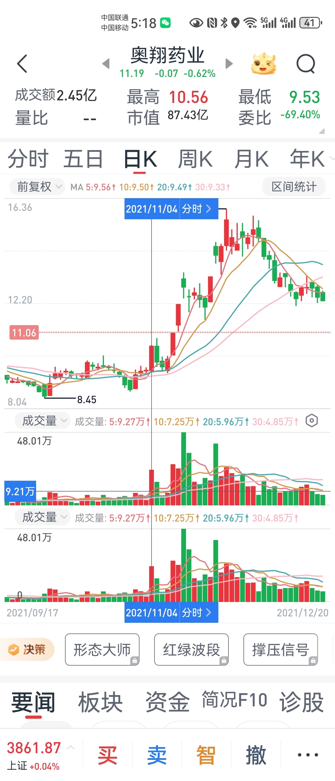 $奥翔药业(SH603229)$ 翱翔药业2021年11月3日公布消息后迎来一波翻倍行情,这次产品正式获批上市会不会来一波更猛烈的快速上涨?接近两个月的调整,忍受不了的走了,留下一批坚定看好的投资者。行情值得期待,明天开始飞翔!