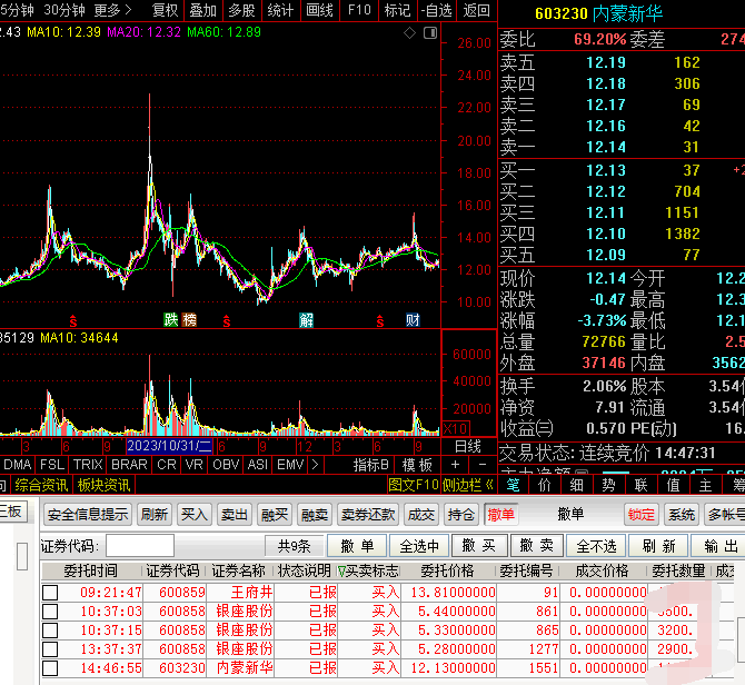 30号14:49分,进?内新华现价能进?银座挂单一整天没进。老王今天做T洗出去,
