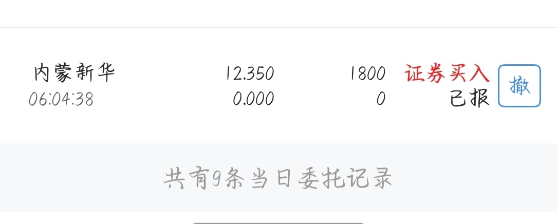 大清早就委托了,昨天12.48卖的,我都不信今天买不进来。