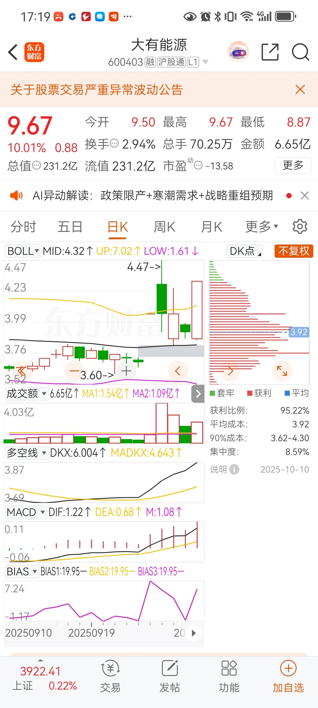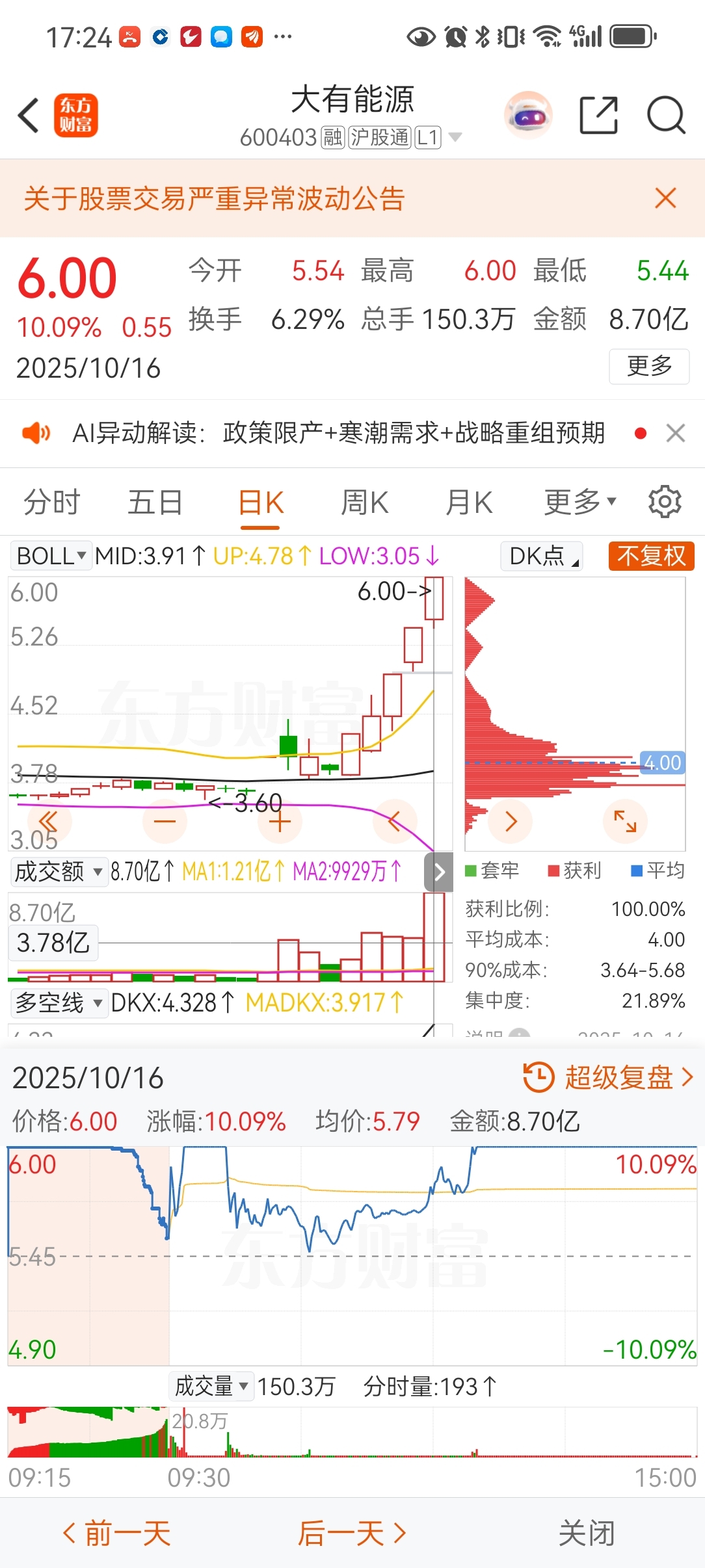 $大有能源(SH600403)$  这个票是很久之前就聊过的,大概是5五月份的时候做过,当时的观点就是煤炭板块超跌涨幅最小,而这个票当时一直有资金在搞事情,后续一直有发帖说,但很少尝试高位接力,所以后续一直看着上去的!但等到真正主升的时候却错过了!