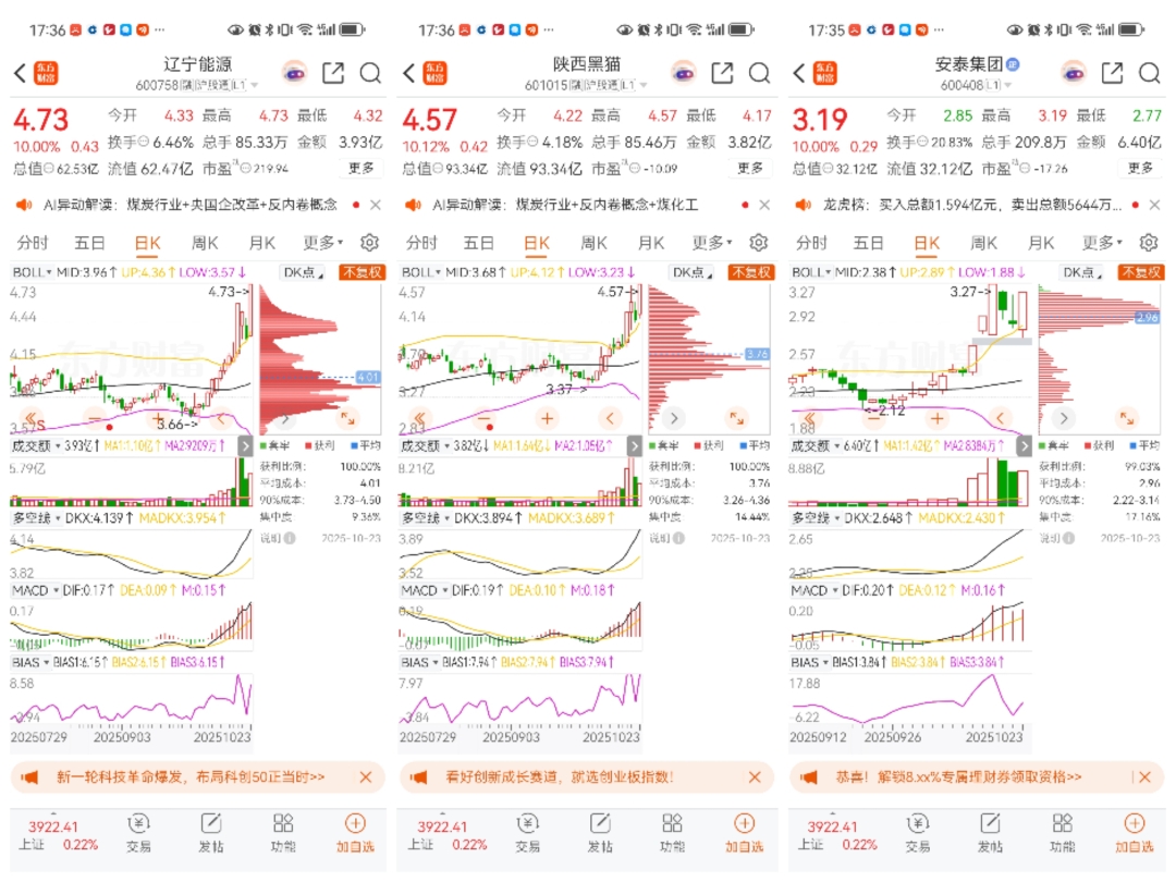 同样煤炭板块相关的个股形态也是类似,辽宁能源,陕西黑猫,安泰集团等都是如此!