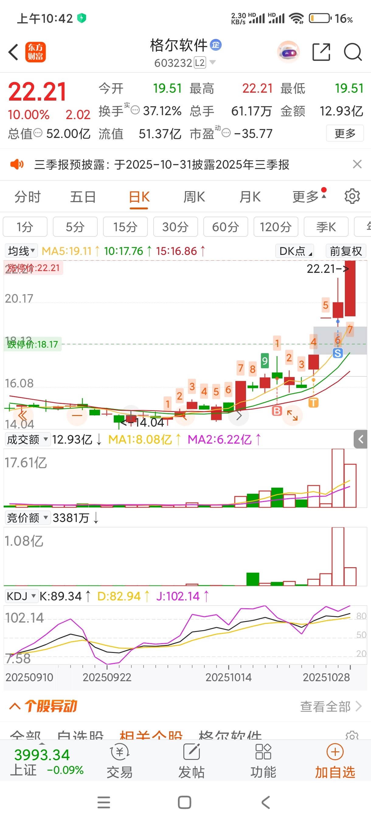 $格尔软件(SH603232)$ 留下了没用的泪水